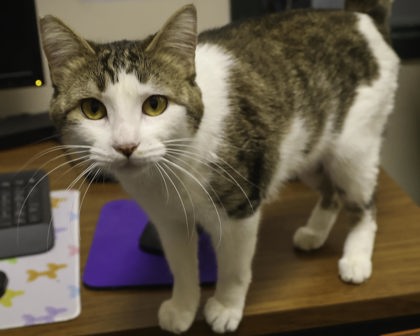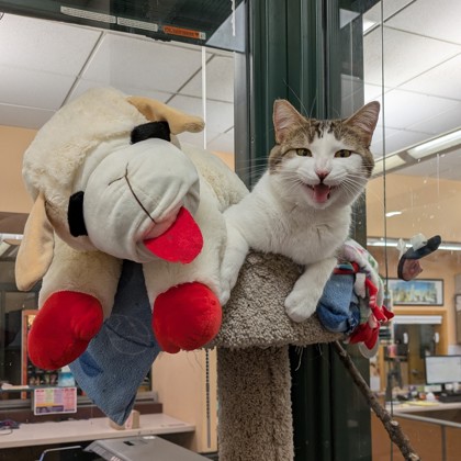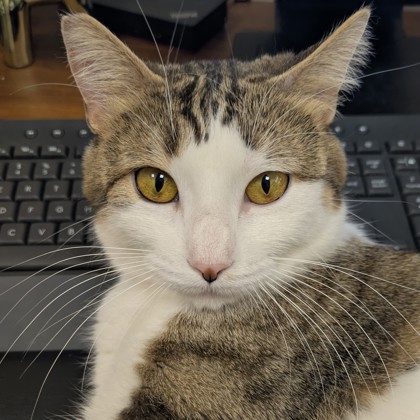 Historial médico: Tengo necesidades de comportamiento específicas que requieren que vaya a un hogar que respete mi independencia y mi necesidad de espacio. ¡Por favor, pregunten a mis amigos del refugio para más información! Por lo demás, parezco un gatito adulto sano, pero siempre es buena idea concertar una cita con el veterinario poco después de la adopción para que podamos conocernos.